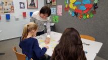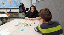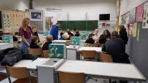 In der oberen Etage des Stammklassentraktes luden die Sprachen und die Fächer Religion, Ethik und Psychologie zum Einkehren ein. Hier wurden durch die Fachlehrer viele Fragen beantwortet. Die Besucher interessierten sich besonders für die angebotenen Fremdsprachen ab Klasse 7 und weiteren Anwahlmöglichkeiten. Im Französischraum konnten zukünftige Schüler bereits ihre ersten Wörter in dieser Fremdsprache lernen.