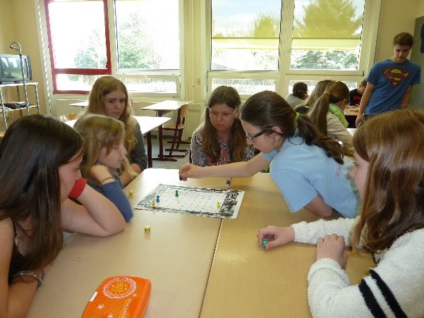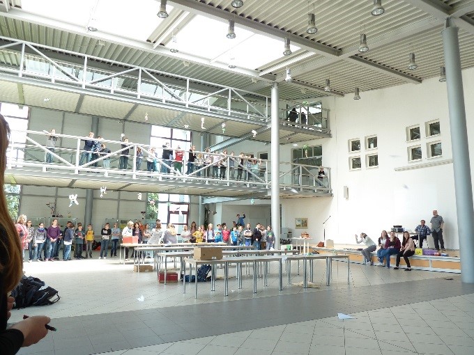 In der letzten Stunde trafen sich alle Schüler in der Aula. Alle Schüler knobelten und spielten was das Zeug hielt für ihre Klasse um die heiß begehrten Punkte.
